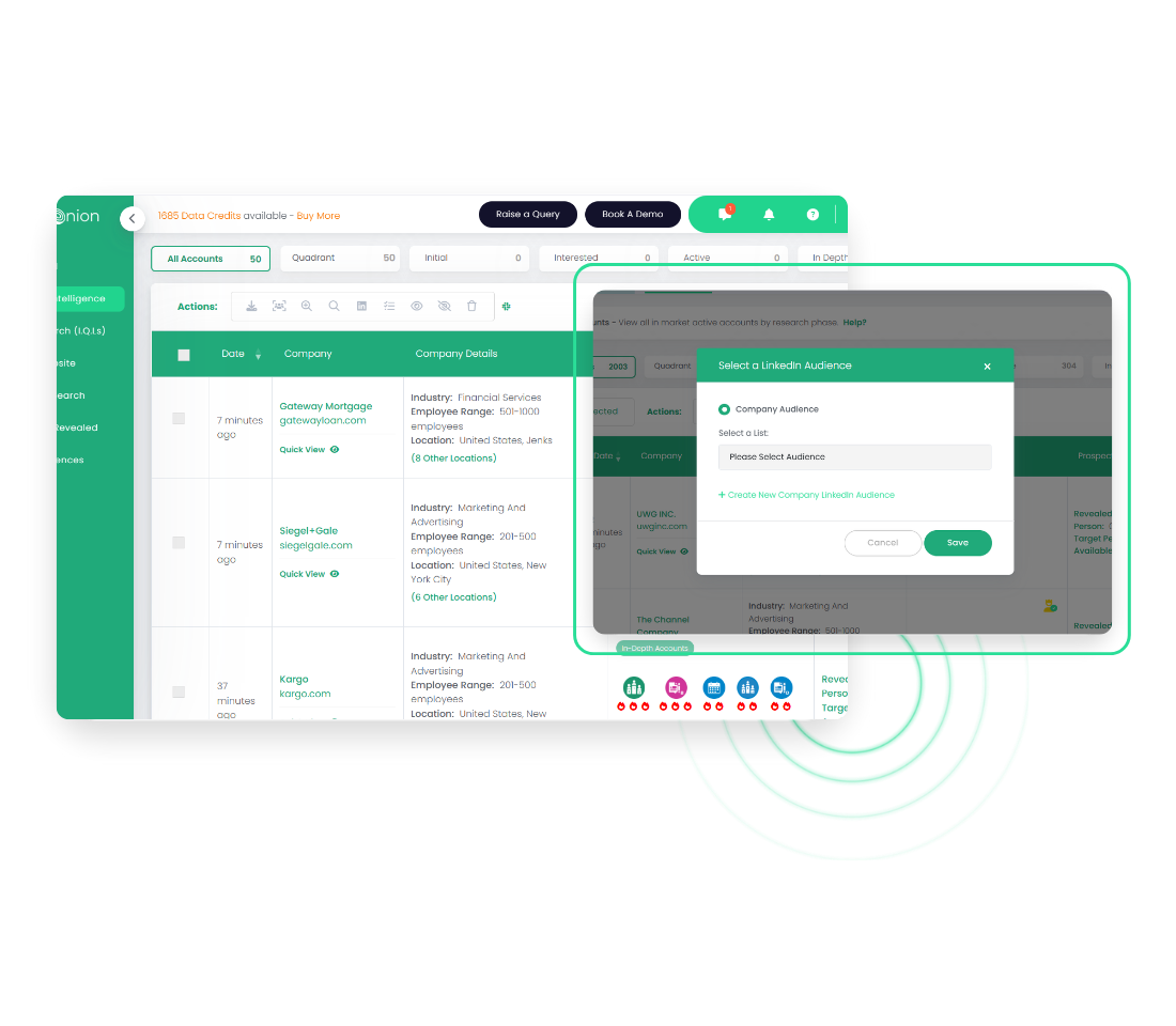 Stop wasting budget on cold audiences. Lead Onion pinpoints which accounts are actively researching your solutions, helping you build smarter ad campaigns, deliver hyper-targeted messaging, and prove marketing ROI with real buying intent.